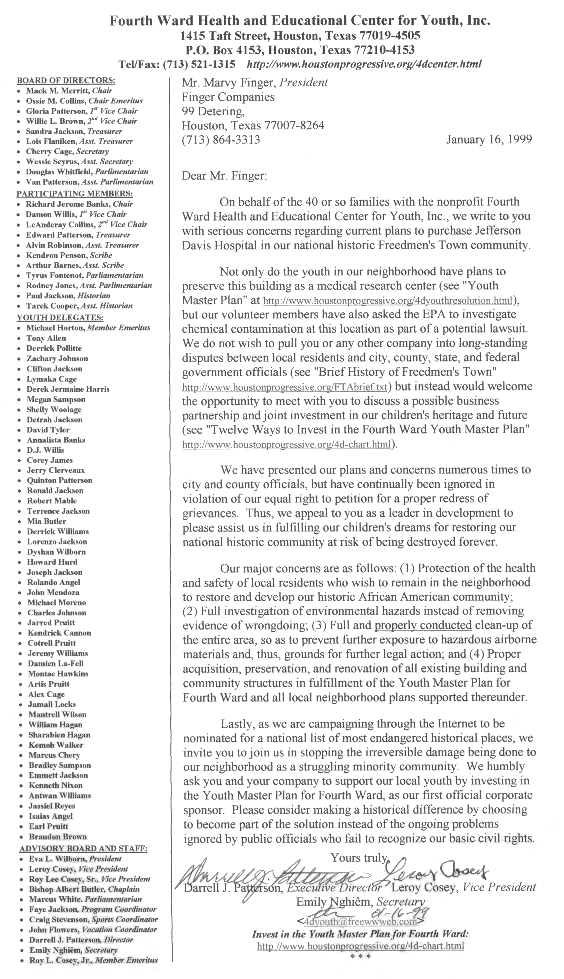 [Fourth Ward Index][Houston Peace and Justice][Corpus Justice][Houston Progressive Index]